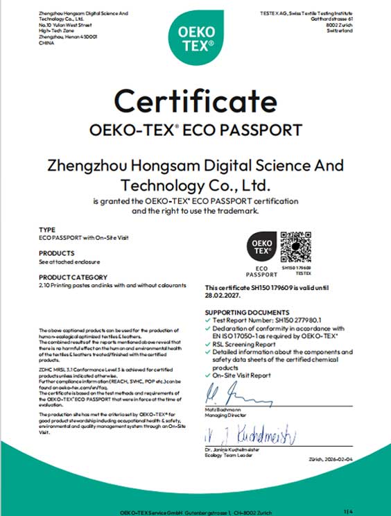 2. 专用墨水开发:专为免水洗工艺开发的高温分散墨水,大幅减少浮色,专用于免水洗方案;