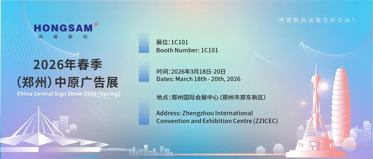 2026年3月18-20日,郑州国际会展中心,第45届中原广告展盛大启幕。深耕喷墨领域25载的鸿盛数码携核心技术与全系列解决方案强势亮相,以「绿色智造·墨领未来」为主题,聚焦水性环保乳胶墨水创新应用,为中部广告标识、商业印刷、包装装饰行业带来全新升级方案,与800余家展商、5万余名行业同仁共赴绿色喷印新征程。