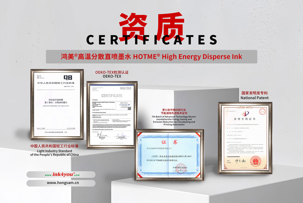 鸿盛数码作为分散染料墨水国家行业标准起草单位,针对化纤及涤纶织物,专为追求极致牢度与色彩深度而研发了高温分散墨水。