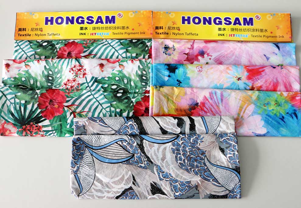 我们经过十多年的研发,利用专利技术,完善了“捷特丝®”纺织品数码印花涂料墨水的各项性能,颜色鲜艳,接近活性的色彩,同时实现流畅打印,并进一步提升了色牢度。 此外,我们出于对印染技术的深入了解,研究了前后处理工艺,推出了预处理液,后处理液等配套助剂和工艺,全面提升色彩和色牢度,满足客户需求。